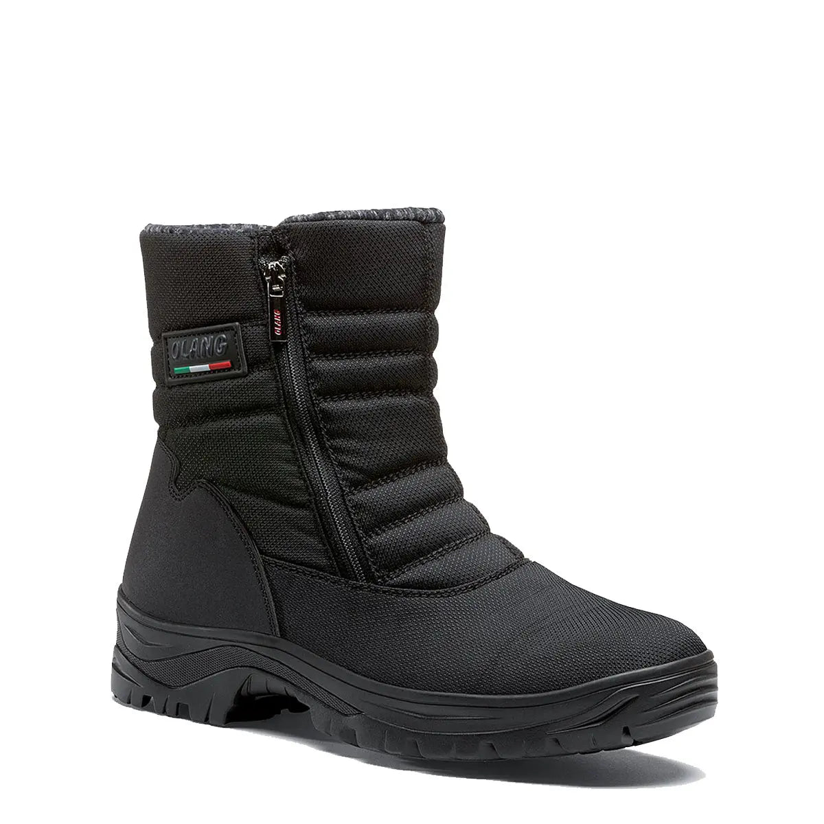 OC System - O caracteristică specială a încălțămintei Olang este versiunea OC SYSTEM. Modelele care prezintă această specificație includ un mecanism aplicat în tălpi care asigură extra adereneță și stabilitate pe teren înghețat. Sistemul dispune de crampoane din oțel inoxidabil și un cadru creat din poliuretan special, flexibil, care este durabil chiar și la cele mai extreme temperaturi. Sistemul OC funcționează în două poziții: prindere activă / prindere inactivă (grip on / grip off). Sistemul OC SYSTEM KEY simplifică schimbarea pozițiilor. GRIP ON: instrumentul antialunecare mărește aderența pe suprafețe înghețate, ajutând utilizatorul să meargă confortabil și să păstreze o poziție fermă. GRIP OFF: sistemul se ascunde în canelurile tălpii și permite o plimbare confortabilă pe suprafețe diferite, fără a se deteriora.