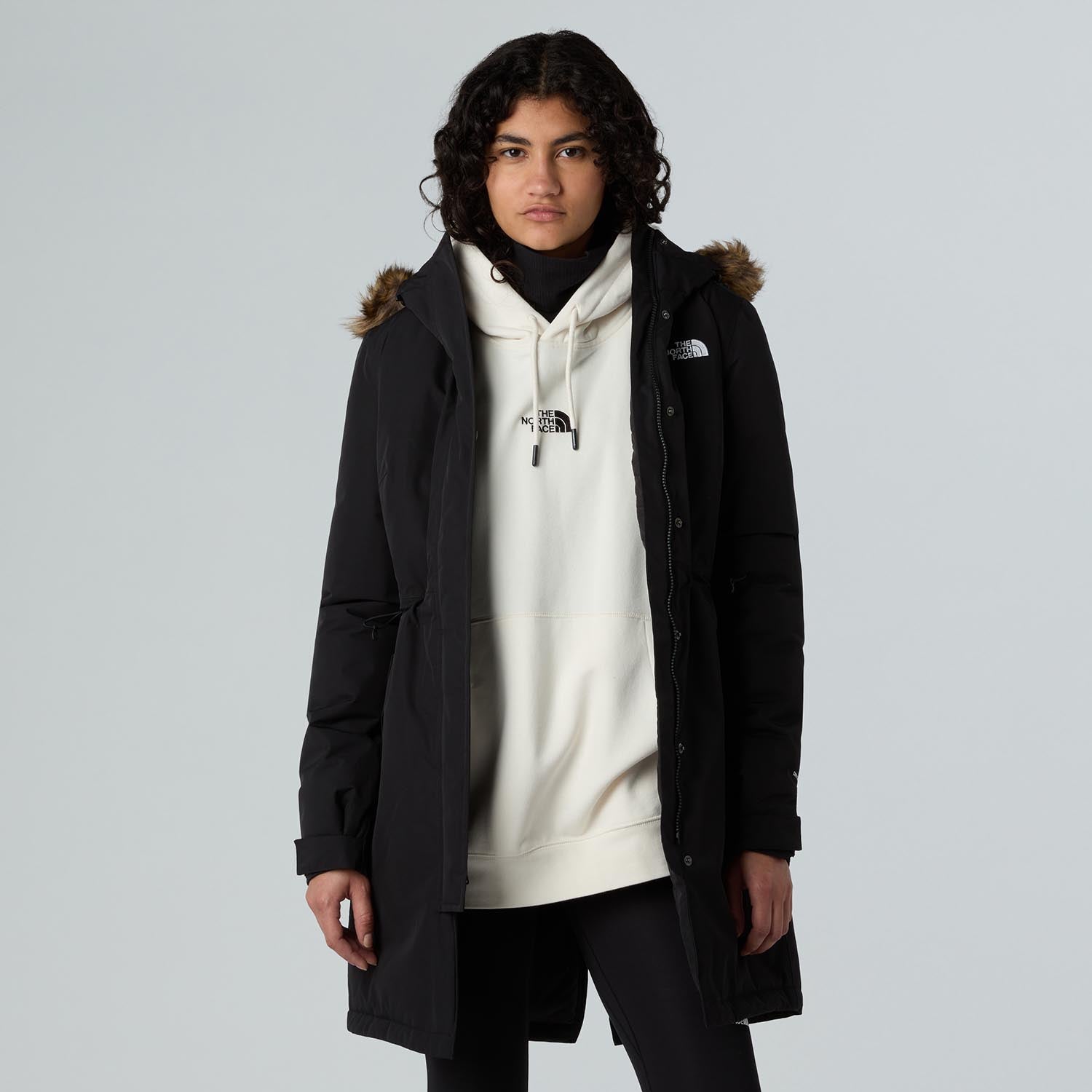 Gluga cu garnitură detașabilă din blană artificială oferă protecție suplimentară. Cordonul ajustabil la talie creează o siluetă feminină și protecție împotriva vântului. Această geacă The North Face Zaneck include un buzunar interior la piept pentru obiecte de valoare. Fermoarul bidirecțional acoperit asigură protecție maximă împotriva elementelor.
