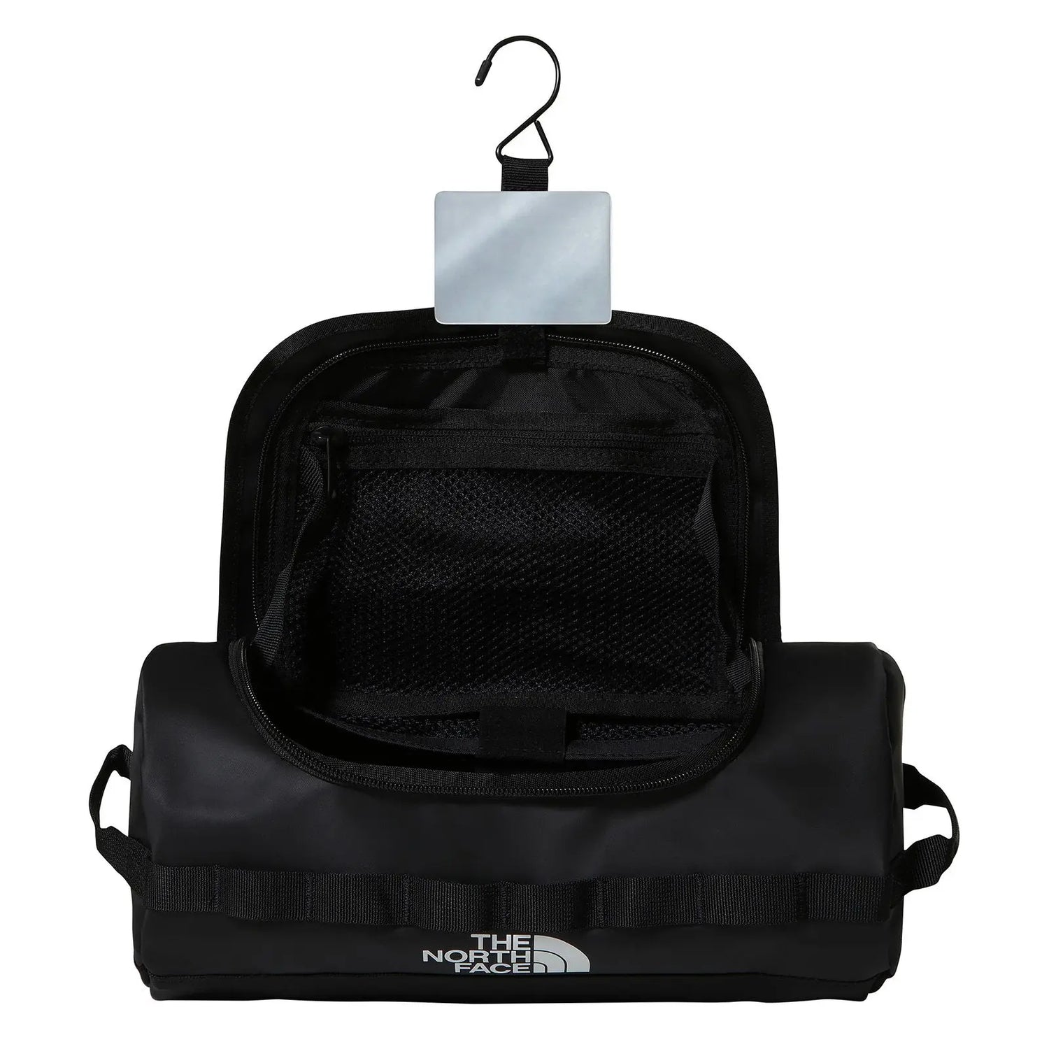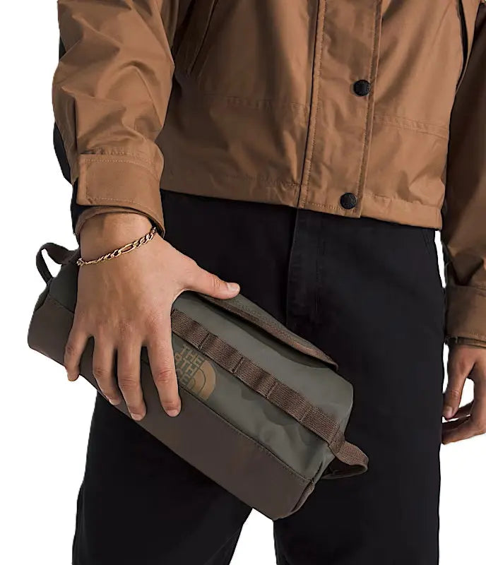 Fabricata din poliester reciclat – la fel ca și geanta noastră Base Camp Duffel – această geantă de călătorie poartă articole de toaletă și articole esențiale de călătorie în mișcare. Are un cârlig intern, mânere duble și o oglindă care poate fi atașată printr-o curea cu cârlig.