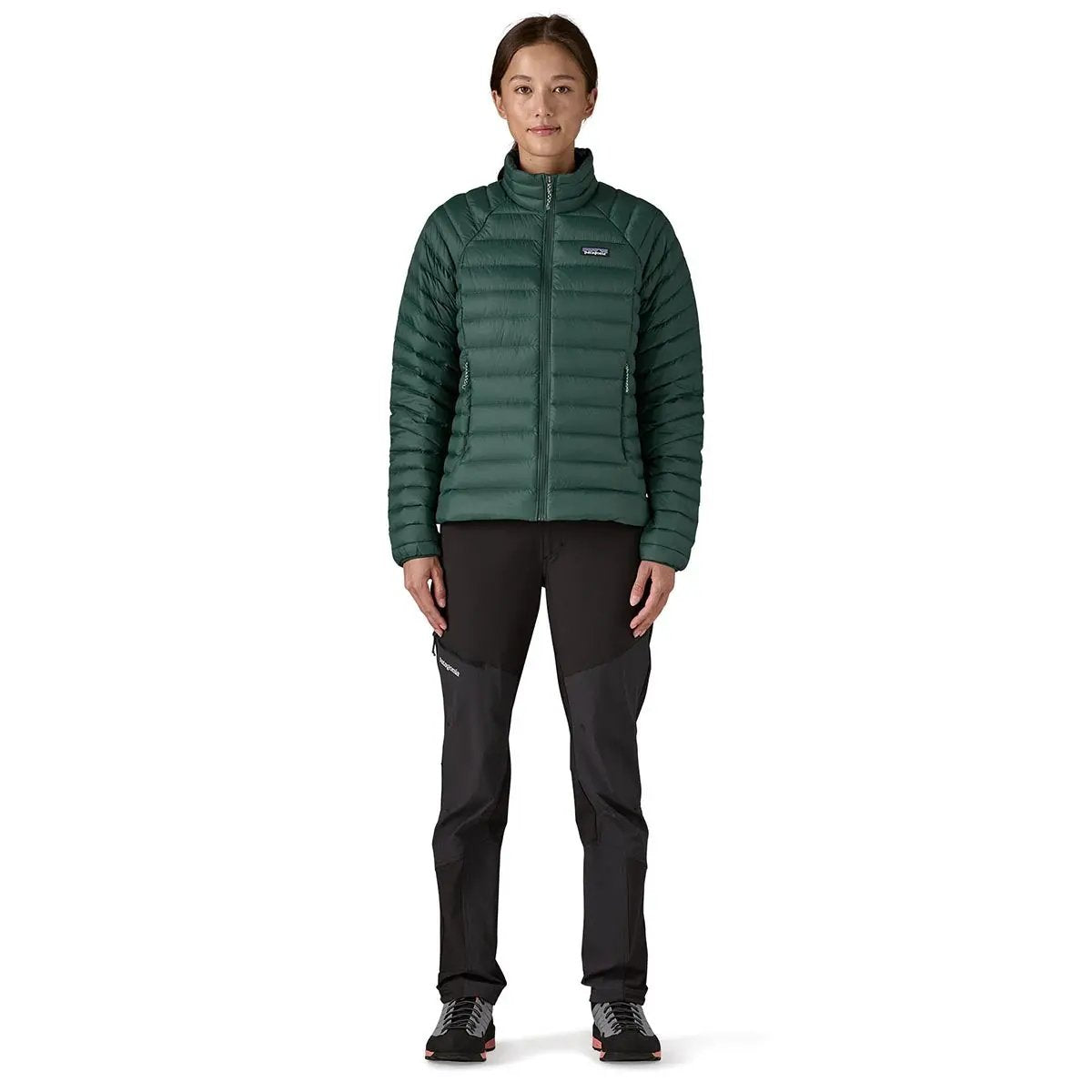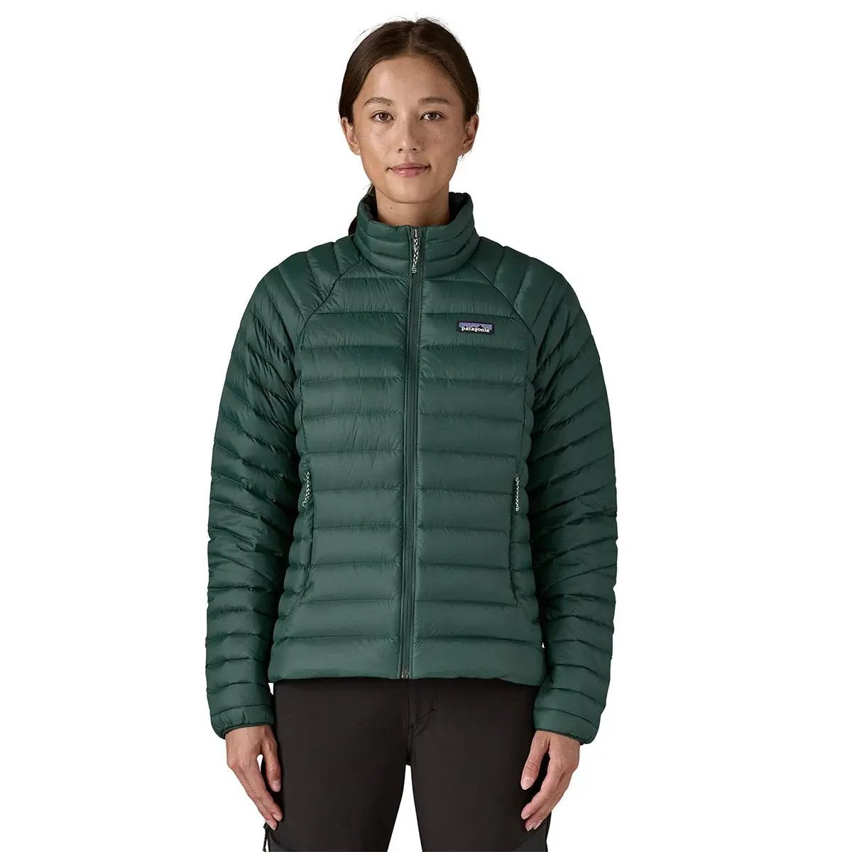 Geaca pentru femei Patagonia W Down Sweater are un exterior din 100% poliester ripstop, această jachetă reuşind să înlăture apa și să țină deoparte vântul, menținând totodată căldura indiferent cât de joase devin temperaturile. Detaliile includ termoizolație din puf de 800 Advanced Global Traceable Down (puf de gâscă certificat NSE monitorizat de la fermă la fabrica de îmbrăcăminte pentru siguranța că păsările care îl livrează nu sunt hrănite cu forța sau chinuite), o potrivire conturată, buzunare de mâini cu fermoar și un buzunar interior la nivelul pieptului cu fermoar şi gaică pentru carabinieră, care poate deveni propriul sac de împachetare a gecii. Ca un plus geaca pentru femei Patagonia W Down Sweater are aplicat şi un finisaj DWR (durable water repellent).