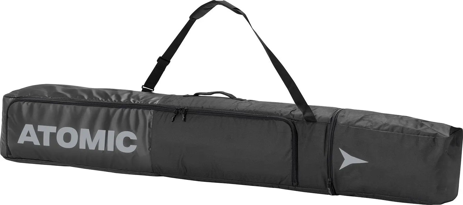 Geanta Atomic Double Ski are loc pentru două perechi de schiuri și bețe, și se poate extinde de la 175cm la 205cm cu un fermoar simplu. Combinat cu niște curele speciale de fixare, vă menține schiurile bine fixate, astfel încât să nu alunece niciodată, moment în care pot apărea daune. Geanta are, de asemenea, o țesătură exterioară rezistentă la apă și la pete plus o căptușeală ușoară de tip Prelată. Este complet căptușită și are o deschidere generoasă pentru un acces foarte ușor.